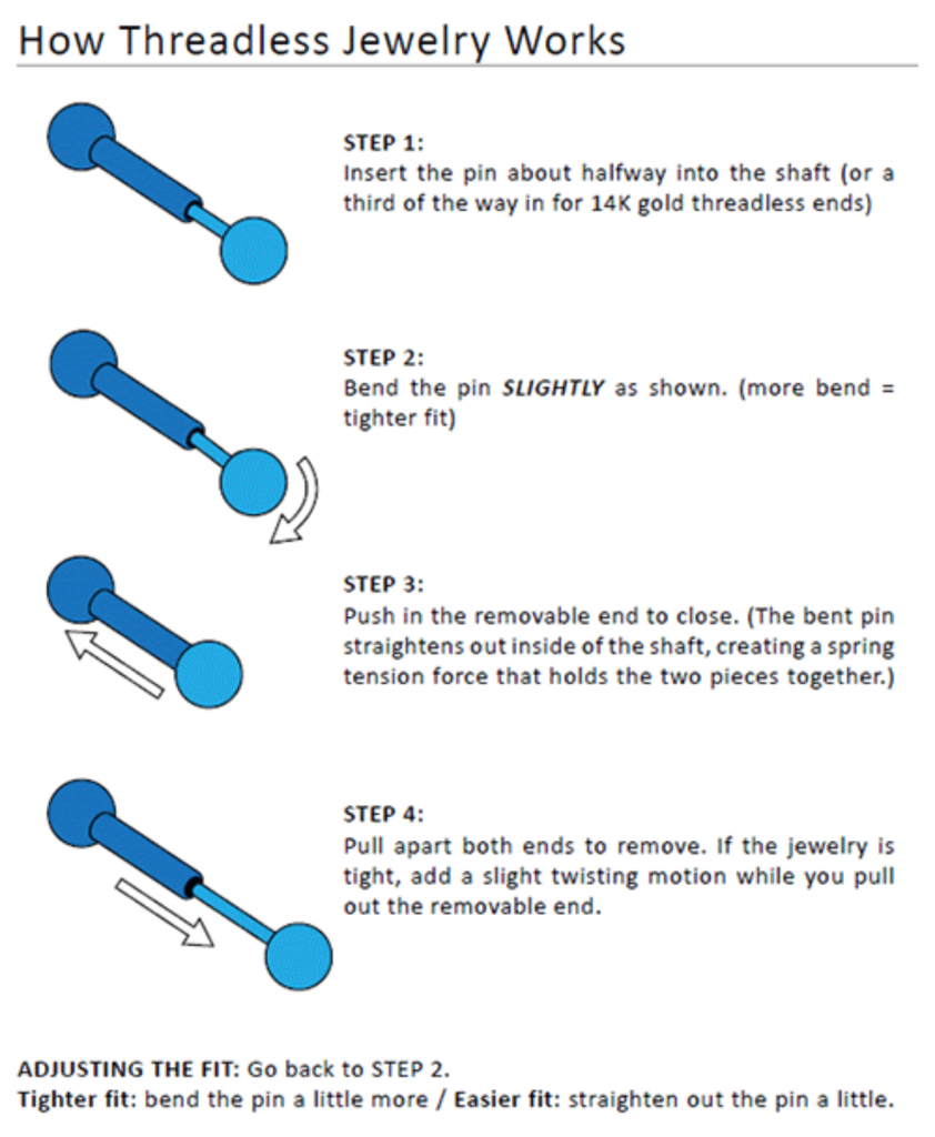 Accessoire Neometal en titane implantable ASTM F136 et Swarovski (titane et bijou fabriqués aux Etats-Unis), garanti à vie, système « threadless » (sans filetage).
